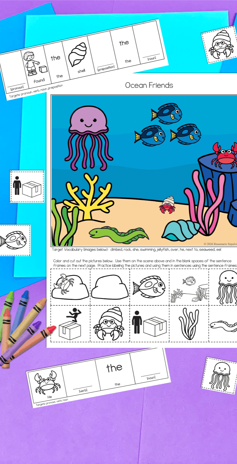 This Simple Sentences freebie targets nouns, pronouns, verbs and prepositions! It includes sentence frames and built in visuals! It's everything you need for your preschool or elementary speech therapy session!